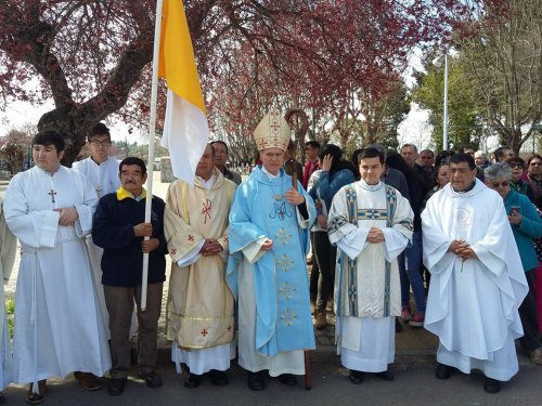 El Obispo diocesano no escondió su profundo reconocimiento al Párroco y se mostró feliz de estar junto a la comunidad en el día de la Oración por Chile y Nuestra Sra. De Las Mercedes.