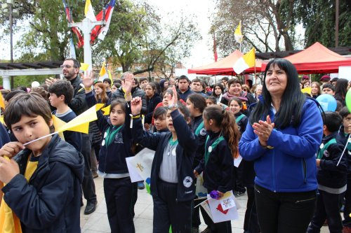 “Especialmente, en esta fiesta hemos querido invitar a los niños porque creemos que en ellos está el futuro de Chile, porque creemos que en sus manos está la posibilidad de construir un Chile mejor, un Chile más justo, fraterno y solidario. Entonces, los hemos convocado para enviarlos como misioneros  de la paz y la alegría, para que ellos se involucren también en el anuncio de esta Buena Noticia que nos trae el Papa Francisco”, afirmó María Cristina Ariztía, miembro del Área de Contenidos.