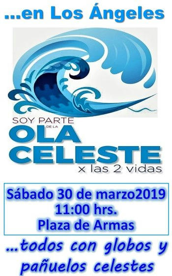 Así lo dio a conocer la representante de la Ola Celeste Chile Carolina García Ortiz, quien está invitando a todos a sumarse a esta manifestación para el sábado 30 de marzo en la plaza de armas de Los Ángeles.
