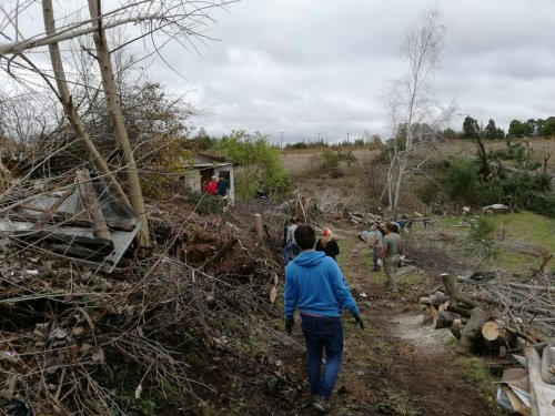Estos hermanos, liderados por los encargados de la Pastoral Social Caritas de Los Ángeles, Jerson Araneda y Catherine Molina se abocaron a la limpieza y remoción de escombros de dos viviendas que no habían sido catastradas por las autoridades y que se encuentran el sector El Avellano, precisamente detrás del colegio San Gabriel.