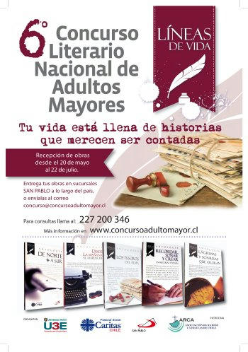 Editorial SAN PABLO, la Pastoral Social Caritas y la U3E de la Universidad Mayor invitan a todos los adultos mayores a participar de la sexta versión del concurso literario nacional Líneas de Vida.