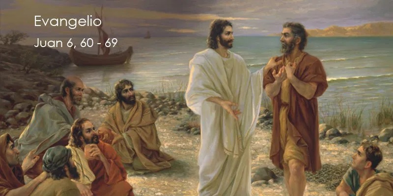 Texto del Evangelio (Jn 6,60-69): En aquel tiempo, muchos de sus discípulos, al oírle, dijeron: «Es duro este lenguaje. ¿Quién puede escucharlo?». Pero sabiendo Jesús en su interior que sus discípulos murmuraban por esto, les dijo: «¿Esto os escandaliza? ¿Y cuando veáis al Hijo del hombre subir adonde estaba antes? El espíritu es el que da vida; la carne no sirve para nada. Las palabras que os he dicho son espíritu y son vida. Pero hay entre vosotros algunos que no creen». Porque Jesús sabía desde el principio quiénes eran los que no creían y quién era el que lo iba a entregar. Y decía: «Por esto os he dicho que nadie puede venir a mí si no se lo concede el Padre».