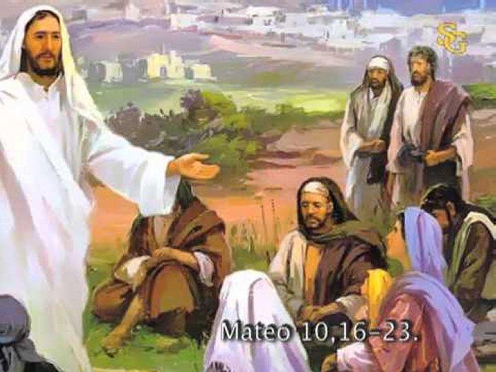 Texto del Evangelio (Mt 10,16-23): En aquel tiempo, Jesús dijo a sus discípulos: «Mirad que yo os envío como ovejas en medio de lobos. Sed, pues, prudentes como las serpientes, y sencillos como las palomas. Guardaos de los hombres, porque os entregarán a los tribunales y os azotarán en sus sinagogas; y por mi causa seréis llevados ante gobernadores y reyes, para que deis testimonio ante ellos y ante los gentiles. Más cuando os entreguen, no os preocupéis de cómo o qué vais a hablar. Lo que tengáis que hablar se os comunicará en aquel momento. Porque no seréis vosotros los que hablaréis, sino el Espíritu de vuestro Padre el que hablará en vosotros.