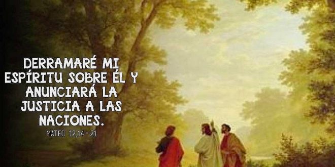 Texto del Evangelio (Mt 12,14-21): En aquel tiempo, los fariseos se confabularon contra Él para ver cómo eliminarle. Jesús, al saberlo, se retiró de allí. Le siguieron muchos y los curó a todos. Y les mandó enérgicamente que no le descubrieran; para que se cumpliera el oráculo del profeta Isaías: «He aquí mi Siervo, a quien elegí, mi Amado, en quien mi alma se complace. Pondré mi Espíritu sobre él, y anunciará el juicio a las naciones. No disputará ni gritará, ni oirá nadie en las plazas su voz. La caña cascada no la quebrará, ni apagará la mecha humeante, hasta que lleve a la victoria el juicio: en su nombre pondrán las naciones su esperanza».