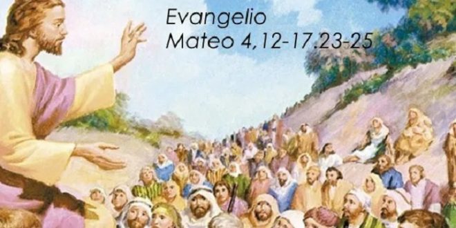 + Evangelio de nuestro Señor Jesucristo según san Mateo 4, 12-17. 23-25: Cuando Jesús se enteró de que Juan Bautista había sido arrestado, se retiró a Galilea. Y, dejando Nazaret, se estableció en Cafarnaúm, a orillas del lago, en los confines de Zabulón y Neftalí, para que se cumpliera lo que había sido anunciado por el profeta Isaías: “¡Tierra de Zabulón, tierra de Neftalí, camino del mar, país de la Transjordania, Galilea de las naciones! El pueblo que se hallaba en tinieblas vio una gran luz; sobre los que vivían en las oscuras regiones de la muerte, se levantó una luz”. A partir de ese momento, Jesús comenzó a proclamar: «Conviértanse, porque el Reino de los Cielos está cerca». Jesús recorría toda la Galilea, enseñando en las sinagogas de ellos, proclamando la Buena Noticia del Reino y sanando todas las enfermedades y dolencias de la gente. Su fama se extendió por toda la Siria, y le llevaban a todos los enfermos, afligidos por diversas enfermedades y sufrimientos: endemoniados, epilépticos y paralíticos, y Él los sanaba. Lo seguían grandes multitudes que llegaban de Galilea, de la Decápolis, de Jerusalén, de Judea y de la Transjordania.