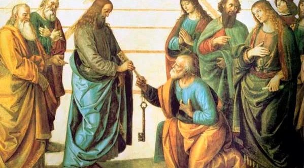 Y Jesús le dijo: «Feliz de ti, Simón, hijo de Jonás, porque esto no te lo ha revelado ni la carne ni la sangre, sino mi Padre que está en el cielo. Y Yo te digo: Tú eres Pedro, y sobre esta piedra edificaré mi Iglesia, y el poder de la muerte no prevalecerá contra ella. Yo te daré las llaves del Reino de los Cielos. Todo lo que ates en la tierra, quedará atado en el cielo, y todo lo que desates en la tierra, quedará desatado en el cielo».