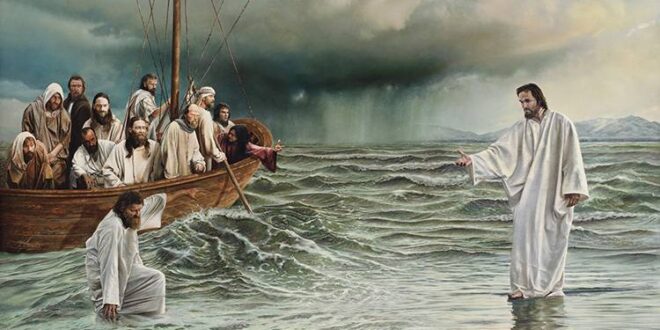 “Ven”, le dijo Jesús. Y Pedro, bajando de la barca, comenzó a caminar sobre el agua en dirección a Él. Pero, al ver la violencia del viento, tuvo miedo, y como empezaba a hundirse, gritó: “Señor, sálvame”. En seguida, Jesús le tendió la mano y lo sostuvo, mientras le decía: “Hombre de poca fe, ¿por qué dudaste?” En cuanto subieron a la barca, el viento se calmó. Los que estaban en ella se postraron ante Él, diciendo: “Verdaderamente, Tú eres el Hijo de Dios”.