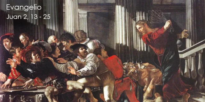 En el Evangelio de este Domingo III de Cuaresma el evangelista Juan nos relata el episodio en que Jesús expulsa a los mercaderes del templo. La lectura comienza ubicando el hecho en el contexto de la fiesta más importante del pueblo judío: «Estaba cerca la Pascua de los judíos y Jesús subió a Jerusalén».