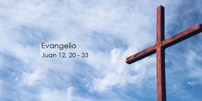 «Jesús les respondió: “Ha llegado la hora de que sea glorificado el Hijo de hombre”». Hasta aquí la advertencia había sido que «aún no había llegado su hora» (Jn 2,4; 4,21.23; 5,25.28; 7,30; 8,20). Este cambio debió haber impactado a sus discípulos. Jesús aclara que es la hora de su glorificación. Pero, inmediatamente, para evitar malentendidos, aclara en qué consiste «su gloria»: «En verdad, en verdad les digo: si el grano de trigo que cae en la tierra no muere, permanece él solo; pero si muere, produce mucho fruto». Jesús era ya «Hijo del hombre», como se expresa refiriéndose a sí mismo. Él, siendo Hijo de Dios, se hizo también Hijo del hombre, en cuanto nacido como verdadero hombre en esta tierra. Él ya ha cumplido la condición del «grano de trigo que cae en tierra». Su glorificación consiste ahora en producir mucho fruto y, para esto −Él lo ha dicho− el grano de trigo debe morir. La gloria de Jesús consiste en su muerte en la cruz. Ese es el acto supremo de la historia humana, que dio a Dios la gloria que merece y obtuvo la salvación del género humano.