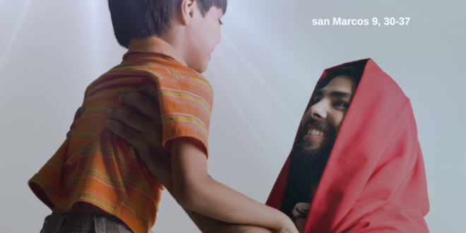 Después, tomando a un niño, lo puso en medio de ellos y, abrazándolo, les dijo: “El que recibe a uno de estos pequeños en mi Nombre, me recibe a mí, y el que me recibe, no es a mí al que recibe, sino a Aquél que me ha enviado”.