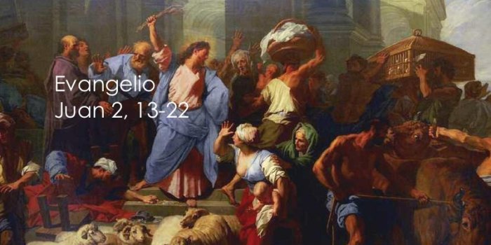 Día litúrgico: 9 de Noviembre: Dedicación de la Basílica del Laterano en Roma Ver 1ª Lectura y Salmo Texto del Evangelio (Jn 2,13-22): Cuando se acercaba la Pascua de los judíos, Jesús subió a Jerusalén. Y encontró en el Templo a los vendedores de bueyes, ovejas y palomas, y a los cambistas en sus puestos. Haciendo un látigo con cuerdas, …