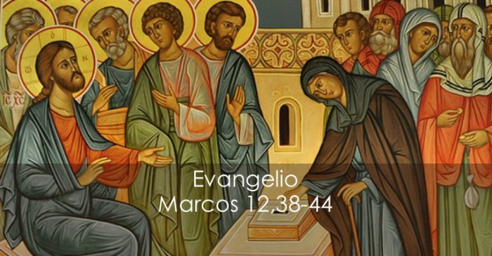 Mc 12,38-44 Busquen primero el Reino de Dios y su justicia El Evangelio de este Domingo XXXII del tiempo ordinario nos presenta a Jesús ya en Jerusalén y, más aun, en el templo. El episodio que leemos está introducido con estas palabras: «Enseñando en el templo, Jesús dijo» (Mc 12,35). Sabemos que el evangelista Marcos nos ofrece poco material didáctico …