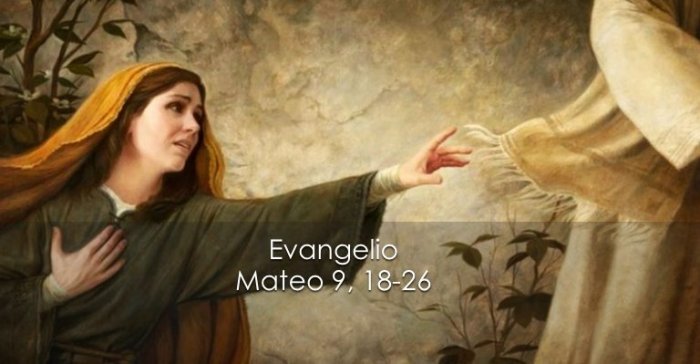 Día litúrgico: Lunes XIV del tiempo ordinario Ver 1ª Lectura y Salmo Texto del Evangelio (Mt 9,18-26): En aquel tiempo, Jesús les estaba hablando, cuando se acercó un magistrado y se postró ante Él diciendo: «Mi hija acaba de morir, pero ven, impón tu mano sobre ella y vivirá». Jesús se levantó y le siguió junto con sus discípulos. En …